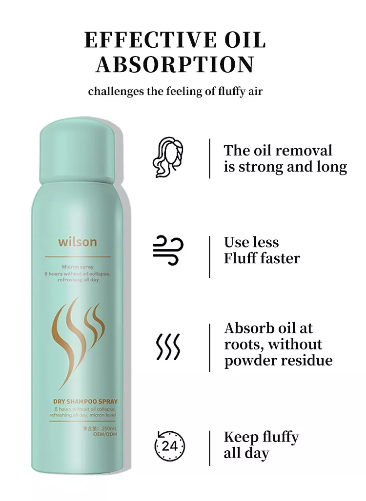 উইলসন ইনস্ট্যান্ট নো-ওয়াশ কুল ড্রাই শ্যাম্পু স্প্রে অনেক তেলের মাথাকে উদ্ধার করেছে সাময়িকভাবে চুলের সমস্যা ধুতে পারে না, প্রধান কাঁচামাল হল ভাতের মাড়, স্টার্চের ছিদ্রযুক্ত গঠন, শোষণ ক্ষমতা, একটি সাধারণ হাইগ্রোস্কোপিক শোষণ কাঁচামাল, কার্যকরভাবে মাথার ত্বকে অতিরিক্ত তেল শোষণ করতে পারে এবং কিছু ইলেক্ট্রোক্যাক্ট এবং চুল পরিষ্কার করতে পারে। চুল থেকে পণ্য অপসারণ সুবিধার উপাদান. ব্যবহারের পরে তাজা এবং প্রাকৃতিক অনুভব করুন।