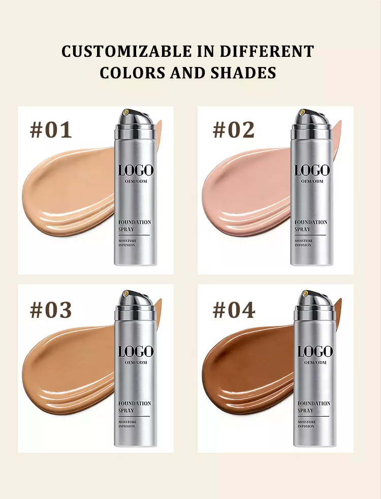 আমাদের উইলসন দীর্ঘস্থায়ী শ্বাসযোগ্য হাইড্রেটিং ফাউন্ডেশন স্প্রে ফর্মুলেশন ডিজাইন, শেড ম্যাচিং, প্যাকেজিং ফর্ম্যাট এবং ব্র্যান্ড লেবেলিং সহ একাধিক দিক জুড়ে কাস্টমাইজেশন অফার করে। ক্লায়েন্টরা কার্যকরী বৈশিষ্ট্য যেমন কভারেজ স্তর, তেল নিয়ন্ত্রণ কার্যকারিতা, ময়শ্চারাইজিং উপাদান এবং সূর্য সুরক্ষা ফ্যাক্টর লক্ষ্য বাজার এবং ভোক্তাদের প্রয়োজনীয়তা অনুসারে তৈরি করতে পারে। একই সাথে, বিভিন্ন ধরণের ত্বকের টোন মিটমাট করার জন্য ব্র্যান্ডের নান্দনিকতার সাথে সারিবদ্ধ বিভিন্ন শেড নির্বাচন করা যেতে পারে। প্যাকেজিংয়ের ক্ষেত্রে, স্প্রে বোতলের ক্ষমতা, উপাদান, অগ্রভাগের ধরন এবং নান্দনিক নকশা সবই কাস্টমাইজযোগ্য, ব্যবহারিকতা এবং দৃশ্যমান আবেদন উভয়ই নিশ্চিত করে। উপরন্তু, আমাদের কারখানা কাস্টম লোগো, প্যাকেজিং প্রিন্টিং, এবং নির্দেশিকা লিফলেট সামগ্রী সহ বেসপোক ব্র্যান্ডিং সমর্থন করে, যা ব্যক্তিগতকৃত ব্র্যান্ড প্রচার এবং বিভেদযুক্ত বাজার অবস্থান সক্ষম করে।