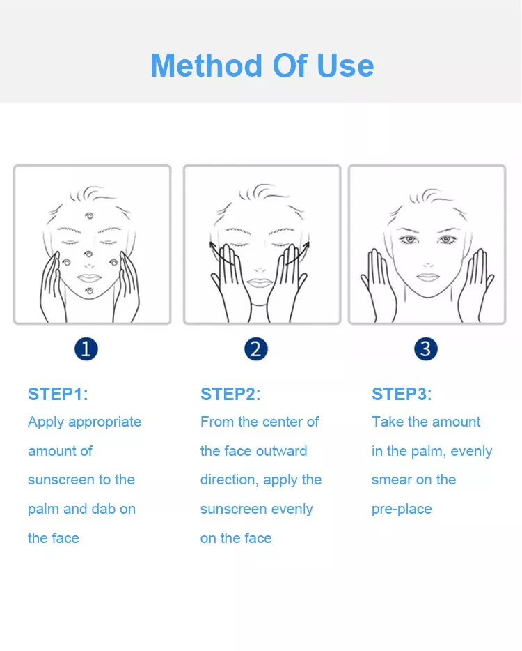 সানস্ক্রিন সম্পূর্ণরূপে কার্যকর করার জন্য বাইরে যাওয়ার 30 মিনিট আগে প্রয়োগ করতে হবে। বহিরঙ্গন কার্যকলাপের সময়, সূর্য সুরক্ষা প্রভাব বজায় রাখার জন্য প্রতি 2 ঘন্টা সানস্ক্রিন পুনরায় প্রয়োগ করা উচিত।