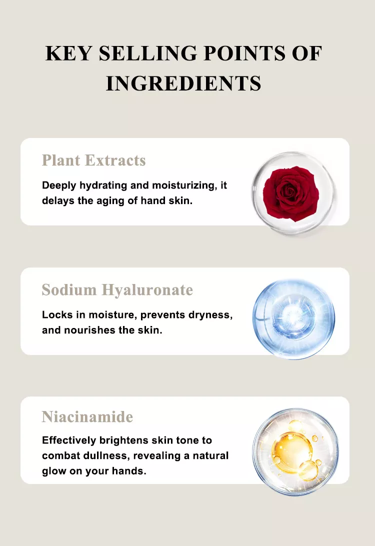 কুইক অ্যাবসর্পশন ইমিডিয়েট রিলিফ হ্যান্ড ক্রিম ব্যবহার করার পর, ত্বক আরও সূক্ষ্ম হয়ে ওঠে, সূক্ষ্ম রেখা কমে যায় এবং ত্বকের জলের পরিমাণ বেড়ে যায়৷ হ্যান্ড ক্রিম দৈনন্দিন জীবনের বিভিন্ন অনুষ্ঠানের জন্য উপযুক্ত, বিশেষ করে যারা ঘনঘন হাত ধোয়, ক্লিনিং এজেন্টদের সংস্পর্শে আসে বা শুষ্ক, ঠান্ডা পরিবেশে থাকে৷ বাড়ির যত্ন, অফিসের সেটিংস বা বাইরের ক্রিয়াকলাপের জন্যই হোক না কেন, হ্যান্ড ক্রিমের সময়মত প্রয়োগ কার্যকরভাবে আপনার হাত রক্ষা করে এবং স্বাস্থ্যকর, তারুণ্যময় ত্বক বজায় রাখে।